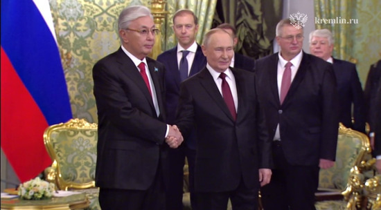 Официальные переговоры между президентом России Владимиром Путиным и президентом Казахстана Касым-Жомартом Токаевым начались в Зеленой гостиной Большого Кремлевского дворца. Накануне лидеры провели неформальную встречу, включая беседу за ужином в резиденции Путина в Кремле.